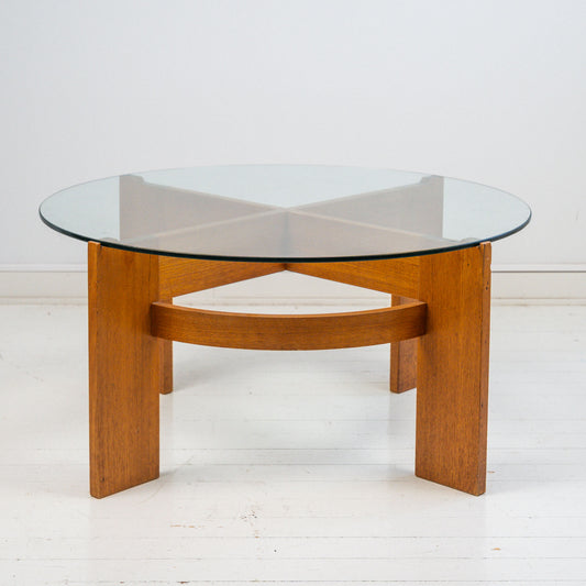 Askon 60-luvun tiikkinen sohvapöytä Lissabon lasikannella