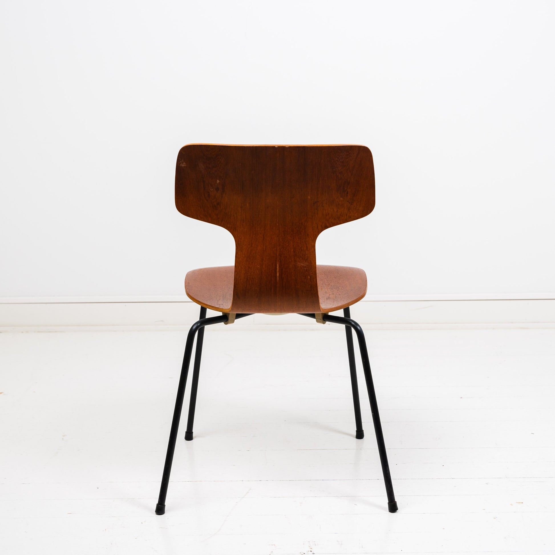 Arne Jacobsenin (1902–1971) tanskalaiselle Fritz Hansenille suunnittelema T-chair oli tuotannossa vuodesta 1955 seitkytluvulle, nämät vuodelta 1967. Tiikkiä, mustat jalat, klassikko, love u, olet söpö, osta pois.