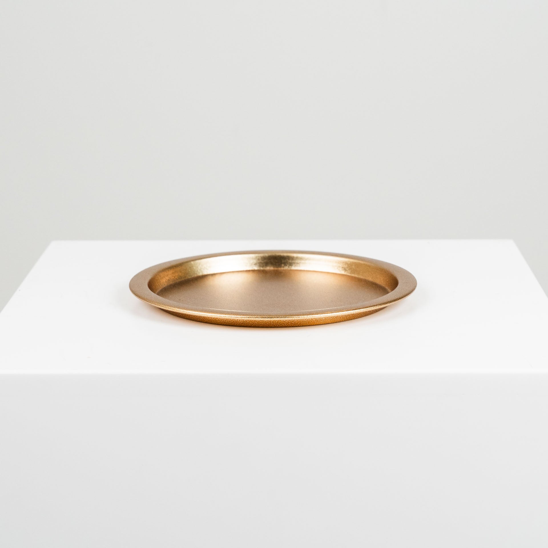 Kotimaisen Aarikan pieni messinkinen lautanen, jolle voit laittaa aikalailla mitä tahansa mitä voisit laittaa myös pöydälle, mutta mitä et halua laittaa pöydälle. Siinäpä lautasen essenssiä yhdestä näkökulmasta.