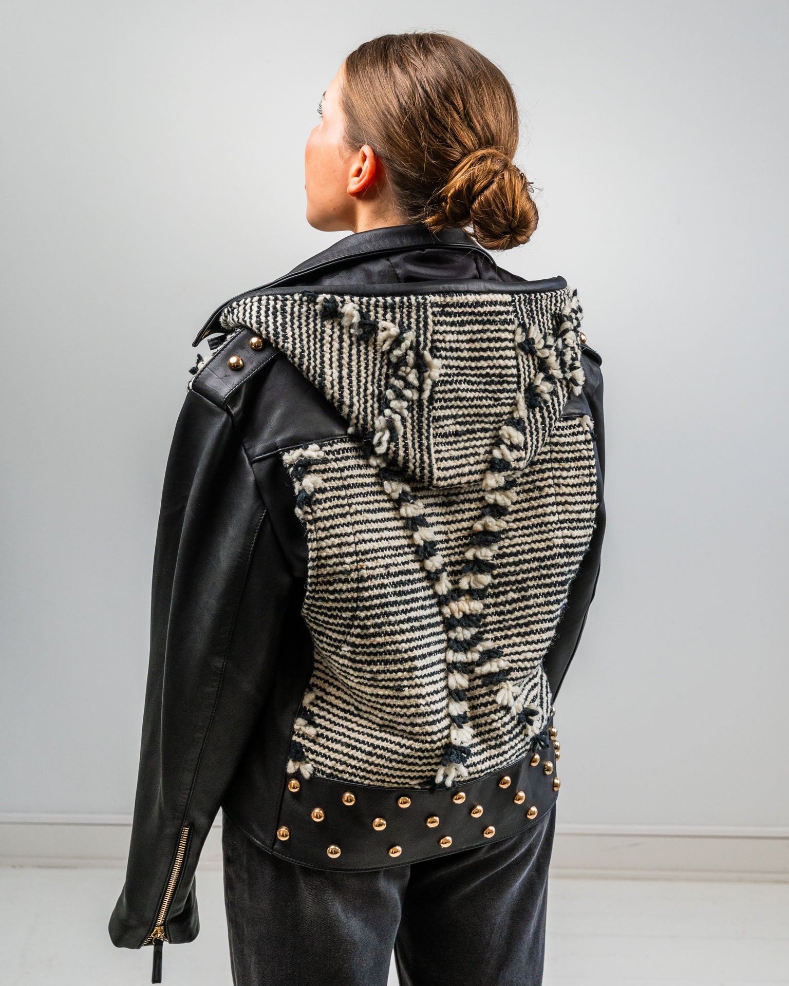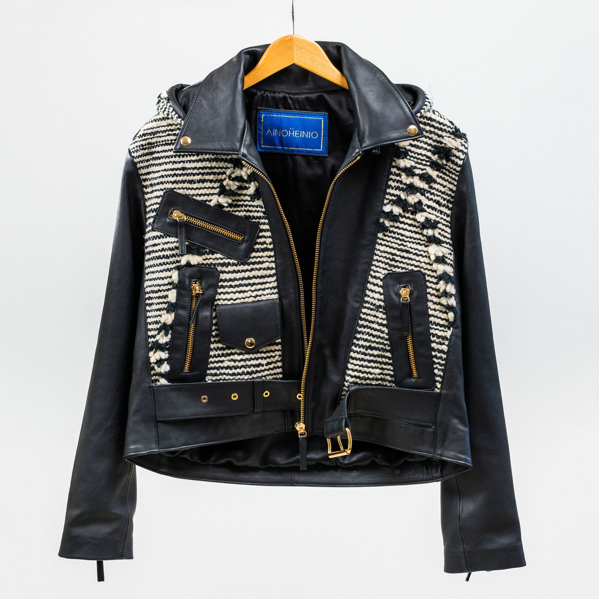 Aino Heiniö, nahkatakki, musta/valkoinen
