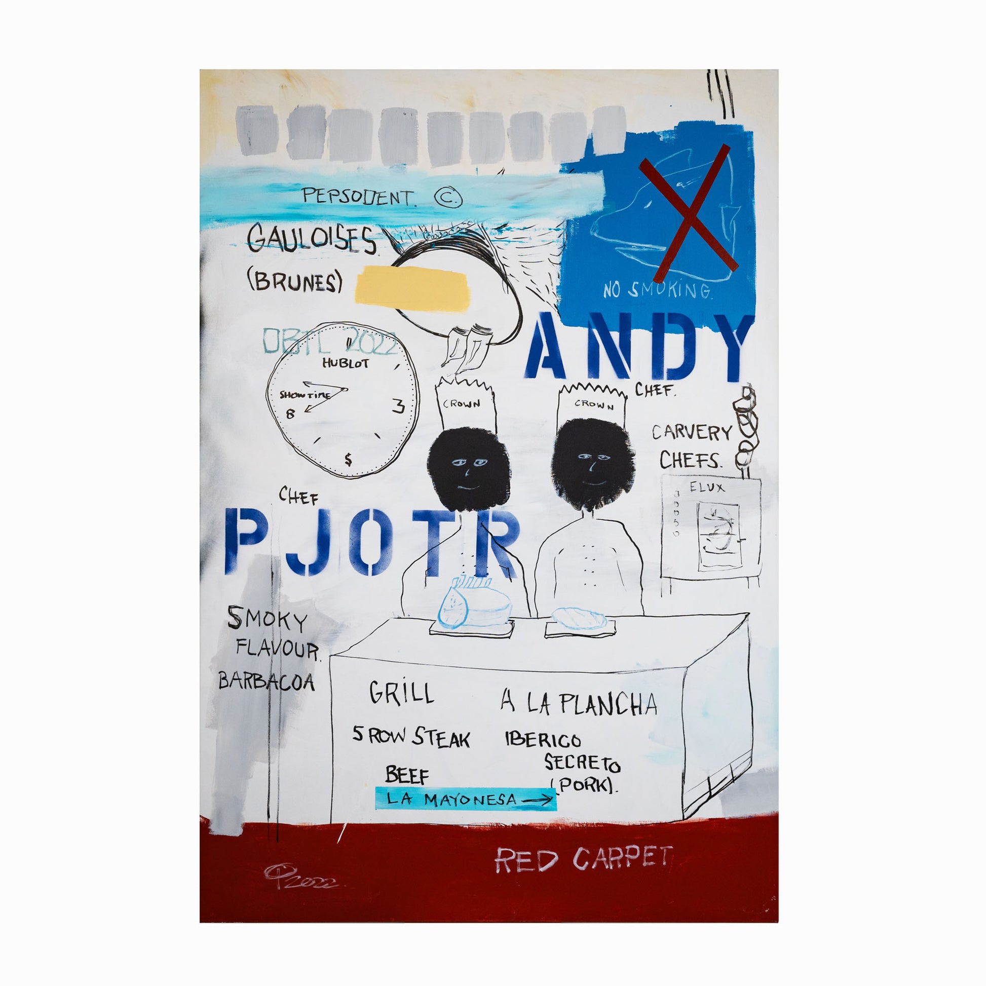 Petteri Luoto, 2022. 162 cm x 110 cm. Akryyli ja tussi kankaalle. Sekatekniikka.