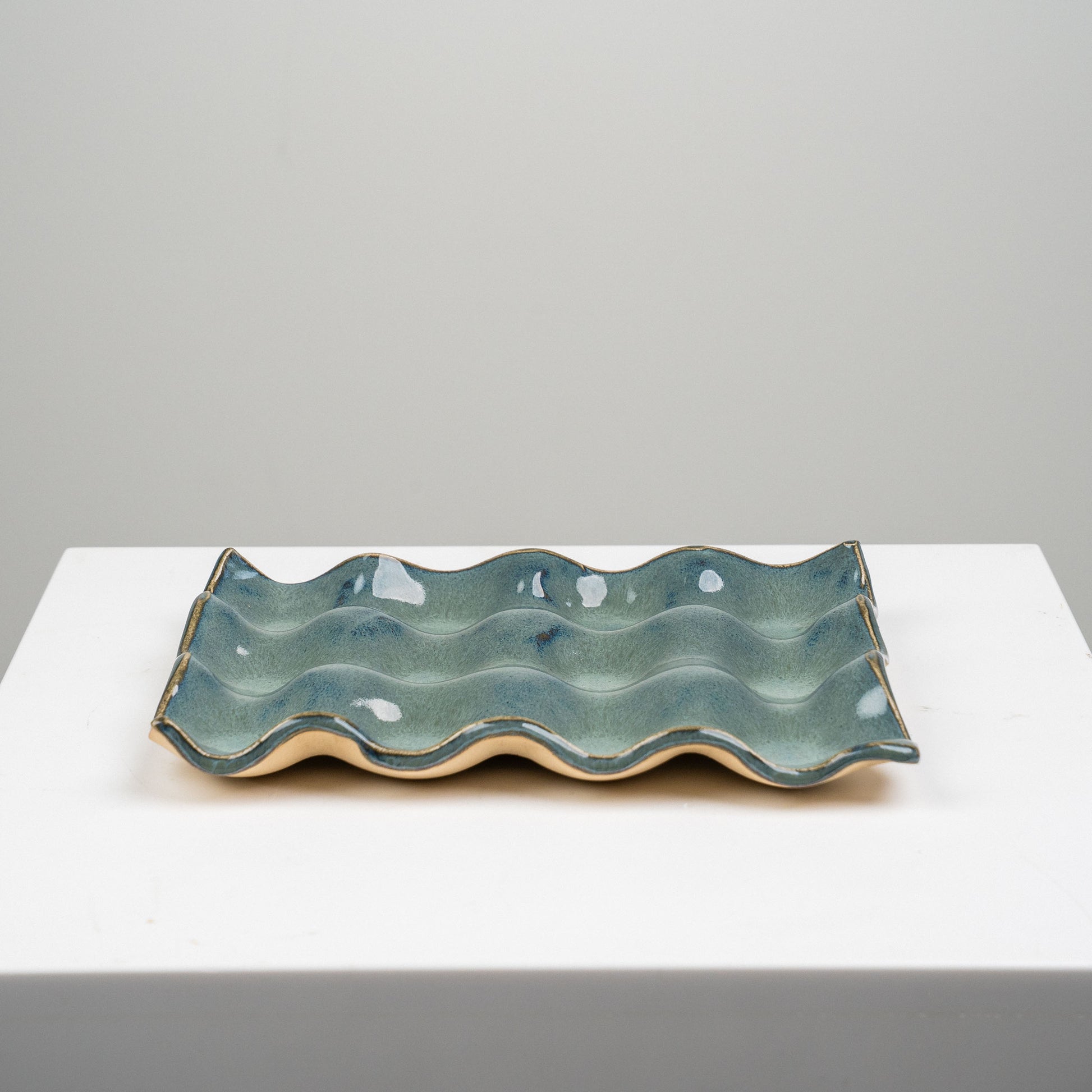 Turkulaisen keramiikkataiteilija Fanni Vapolan Kenno-tarjoilulautanen. Lasitettua kivitavarasavea, 100 % käsityötä.