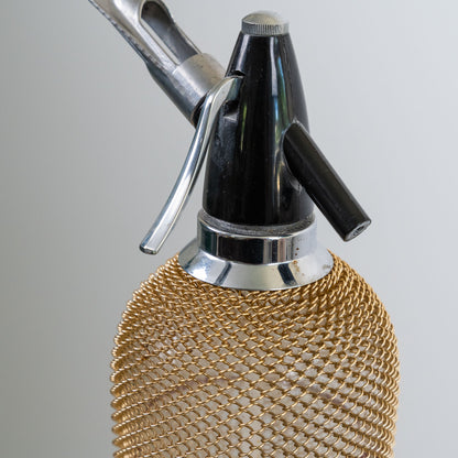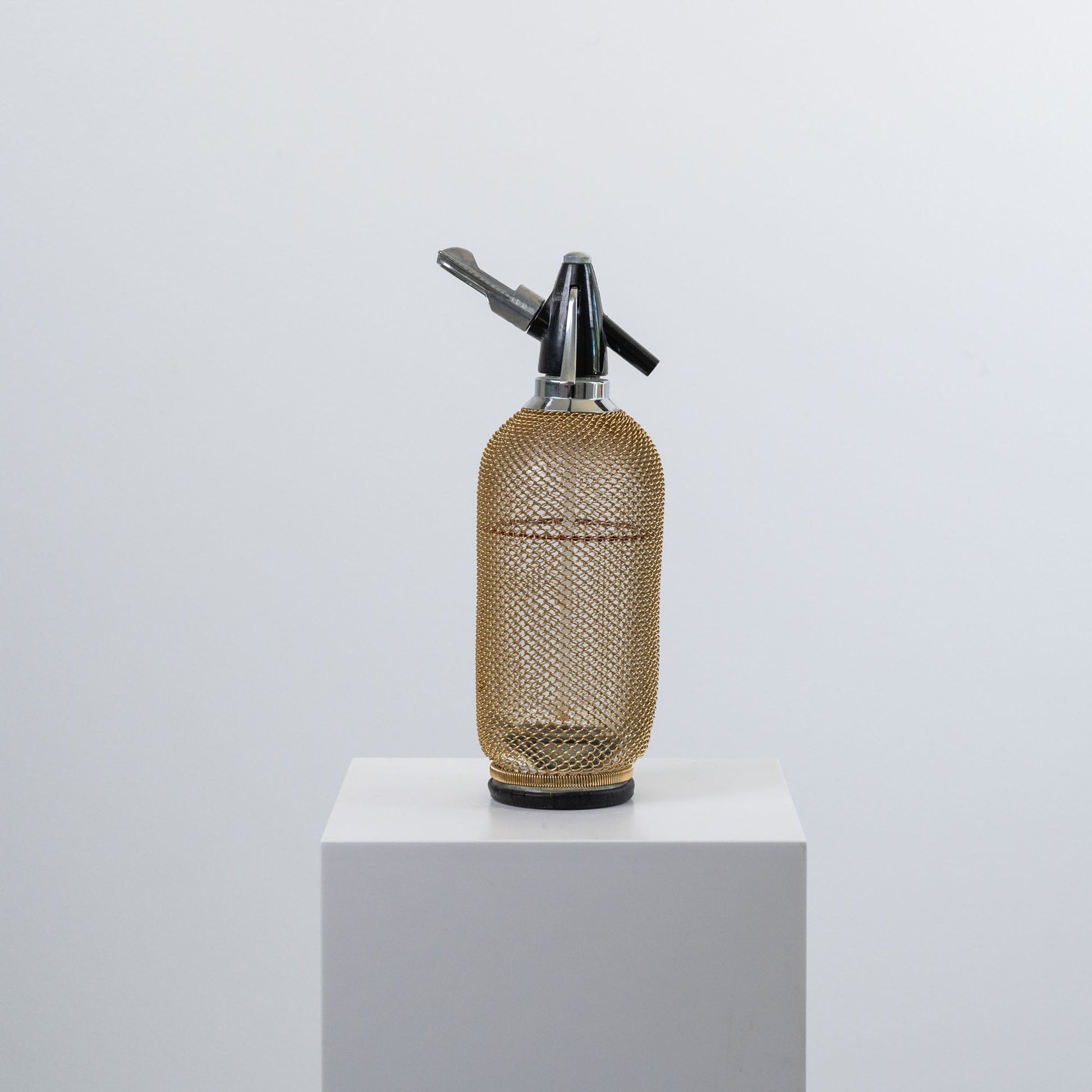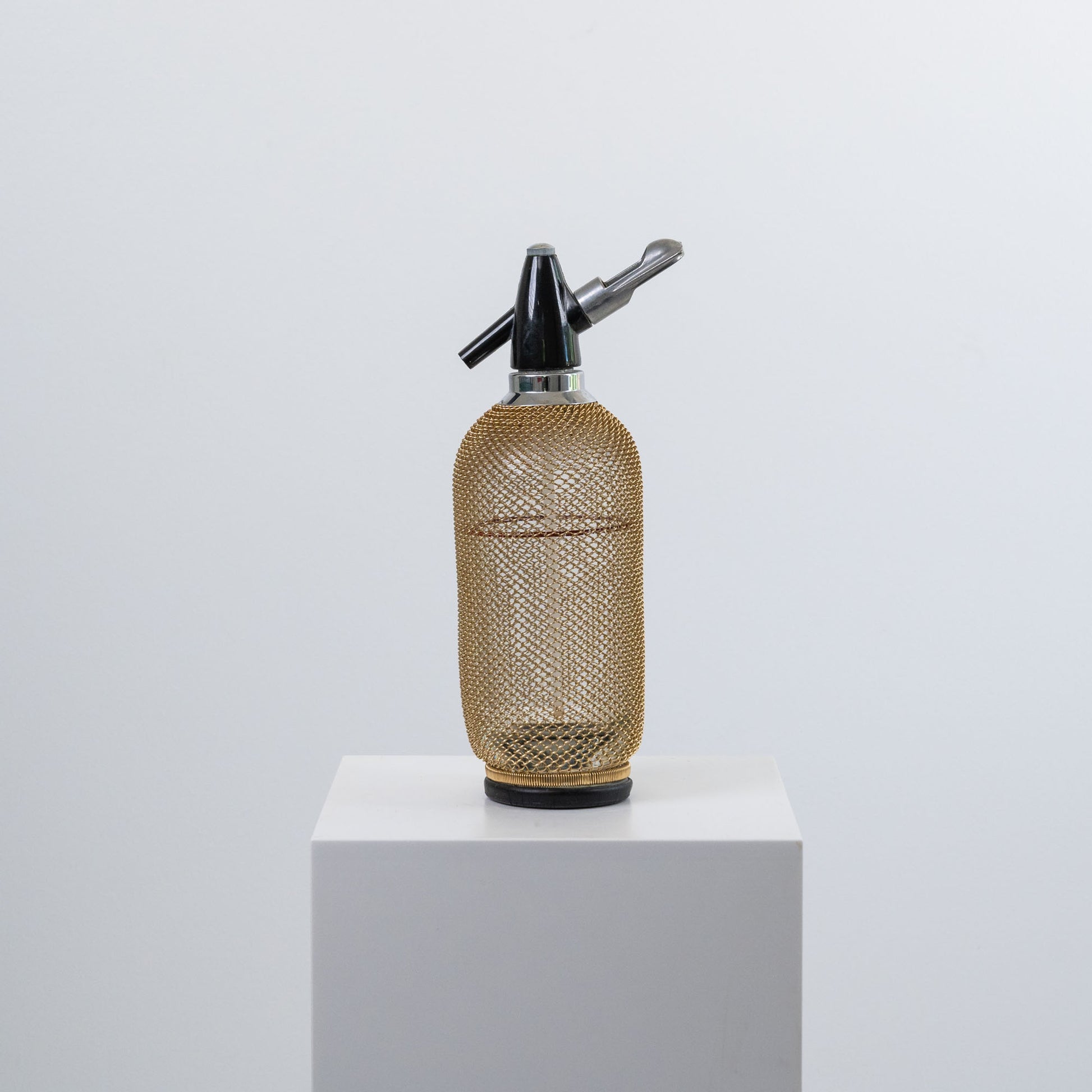 Messinkiverkkoinen klassinen soodasifoni. Käyttökelvoton, mutta sopii koristeeksi.