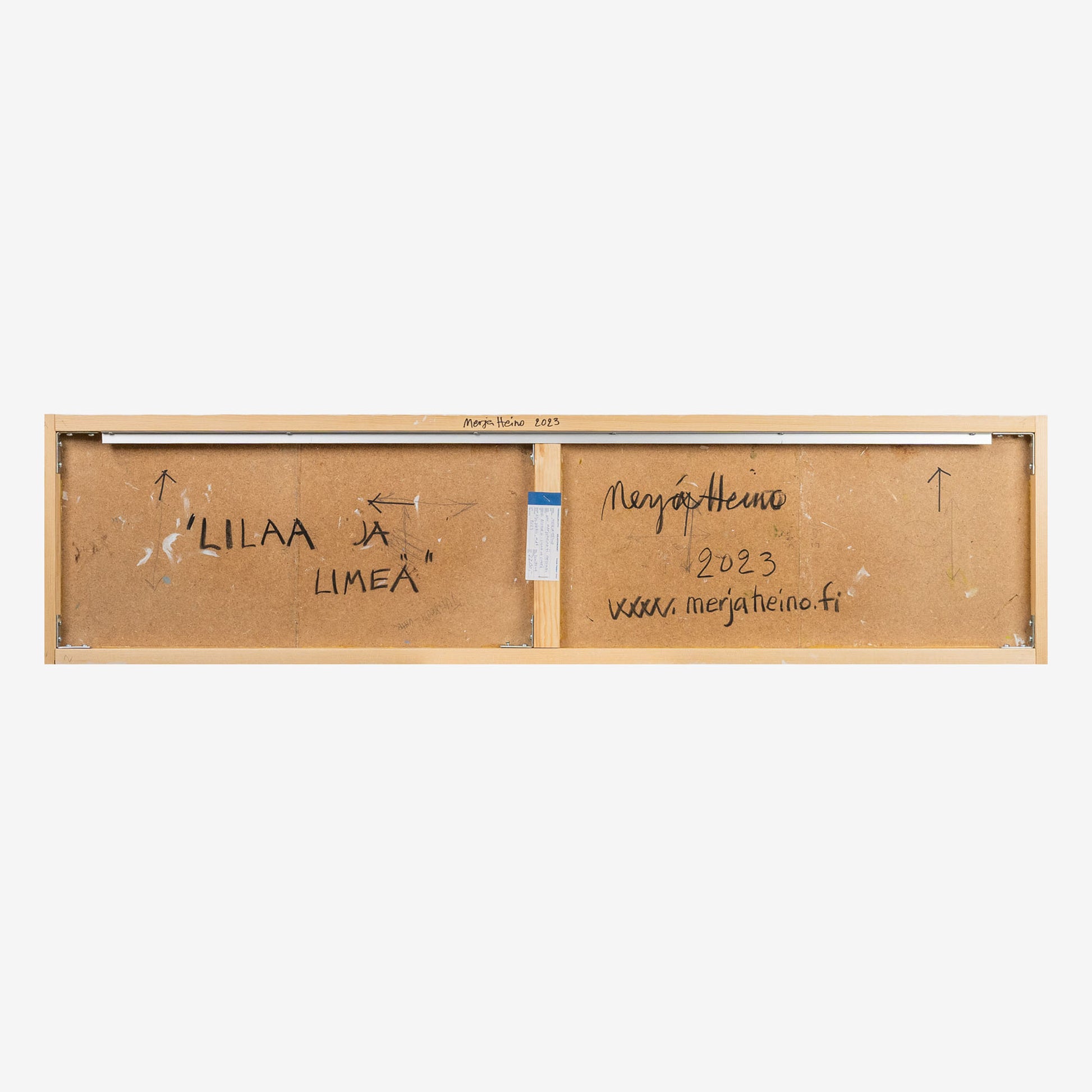 Lilaa ja limeä - Lilac and lime, 2023, öljy mdf:lle ja pleksille, 30 x 120 x 4 cm.
