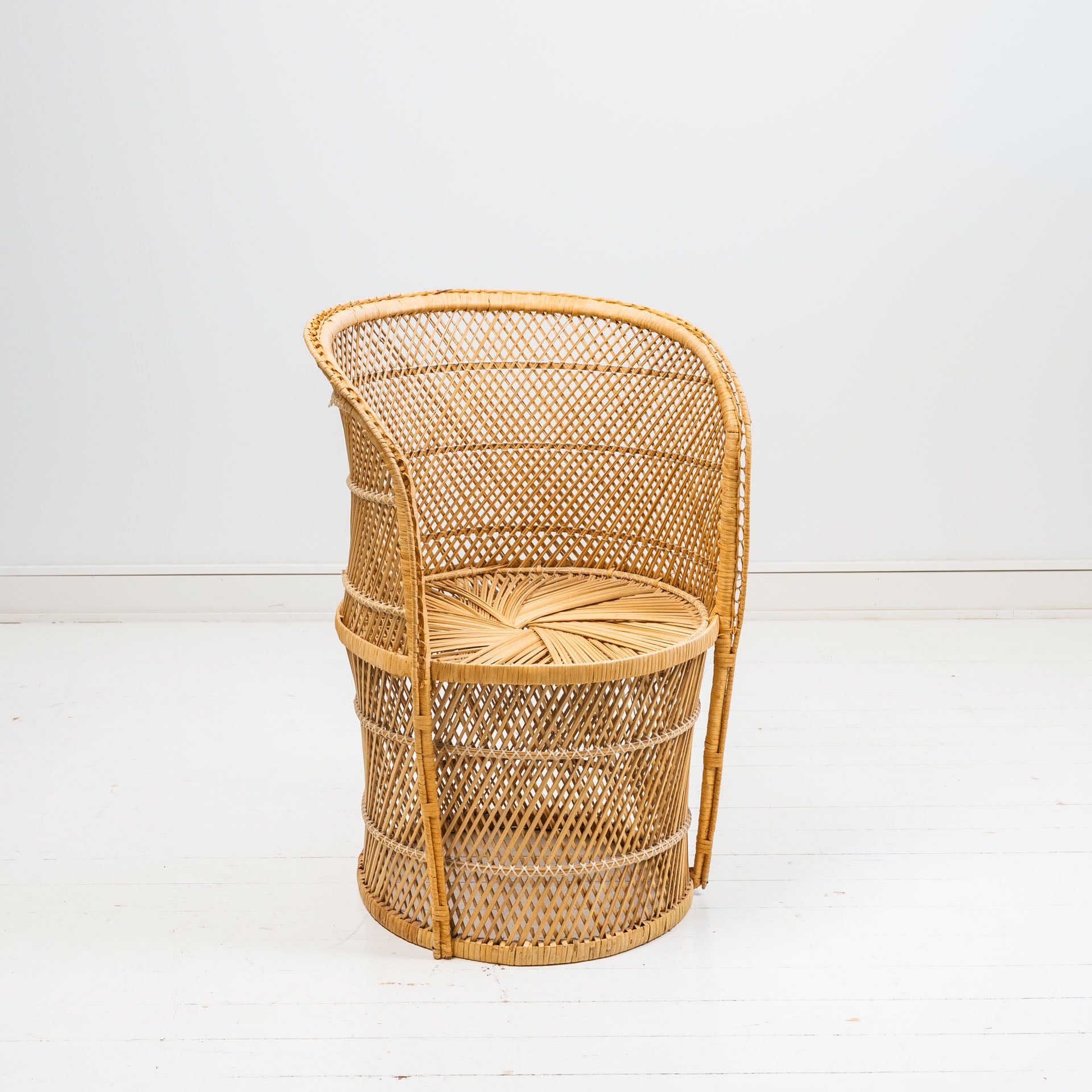 Pieni rottinkituoli, mutta ei siis mini, eli vielä voidaan puhua ihmisen tuolista, eikä esimerkiksi oravan tai pöytä-. Pöytätuoli? Vähän kuin sormiskeittilauta, pieni ruuvari vain puuttuu. Mutta tämä ei siis ole sellainen, mittakaavaksi pala valkoista lattiaa ja seinää.