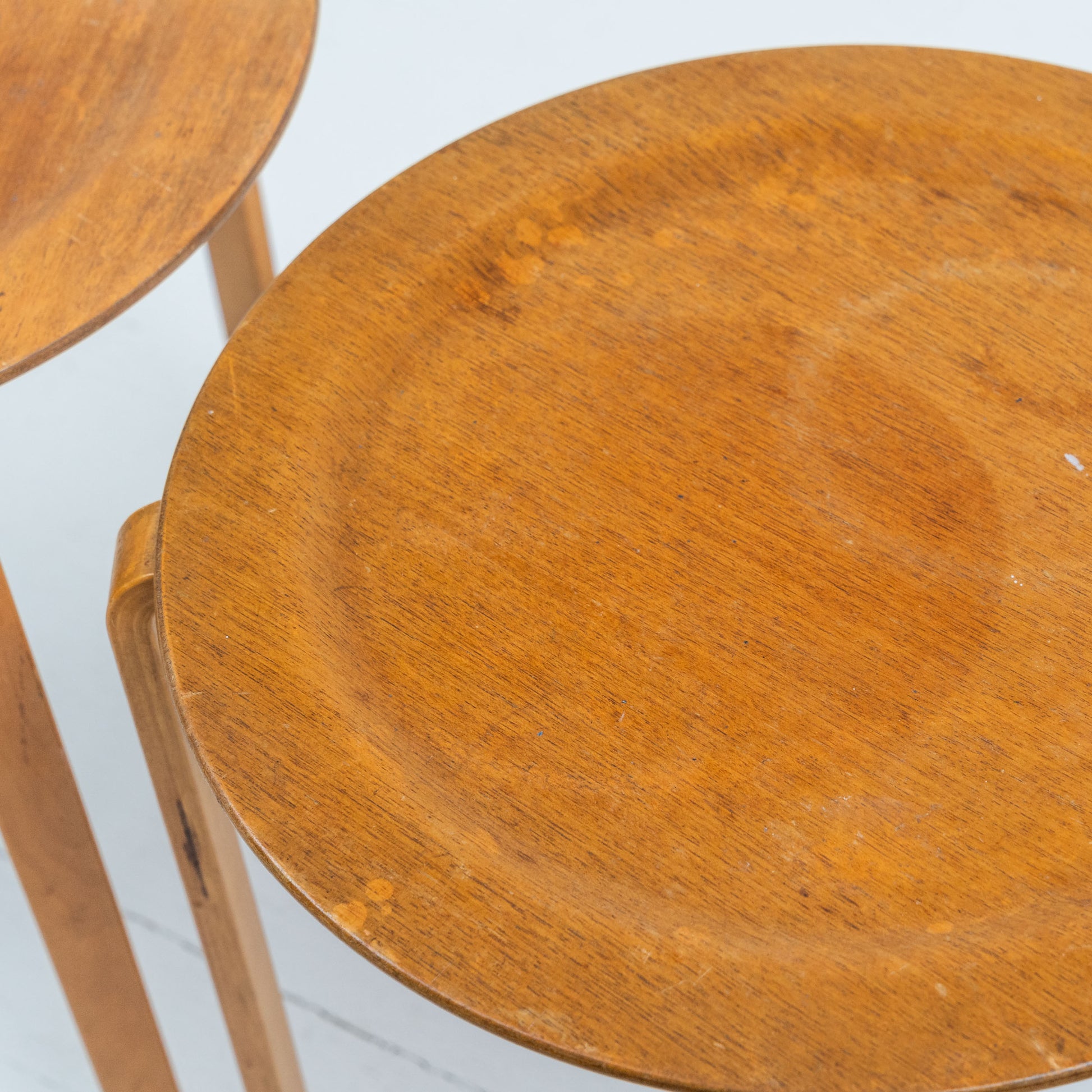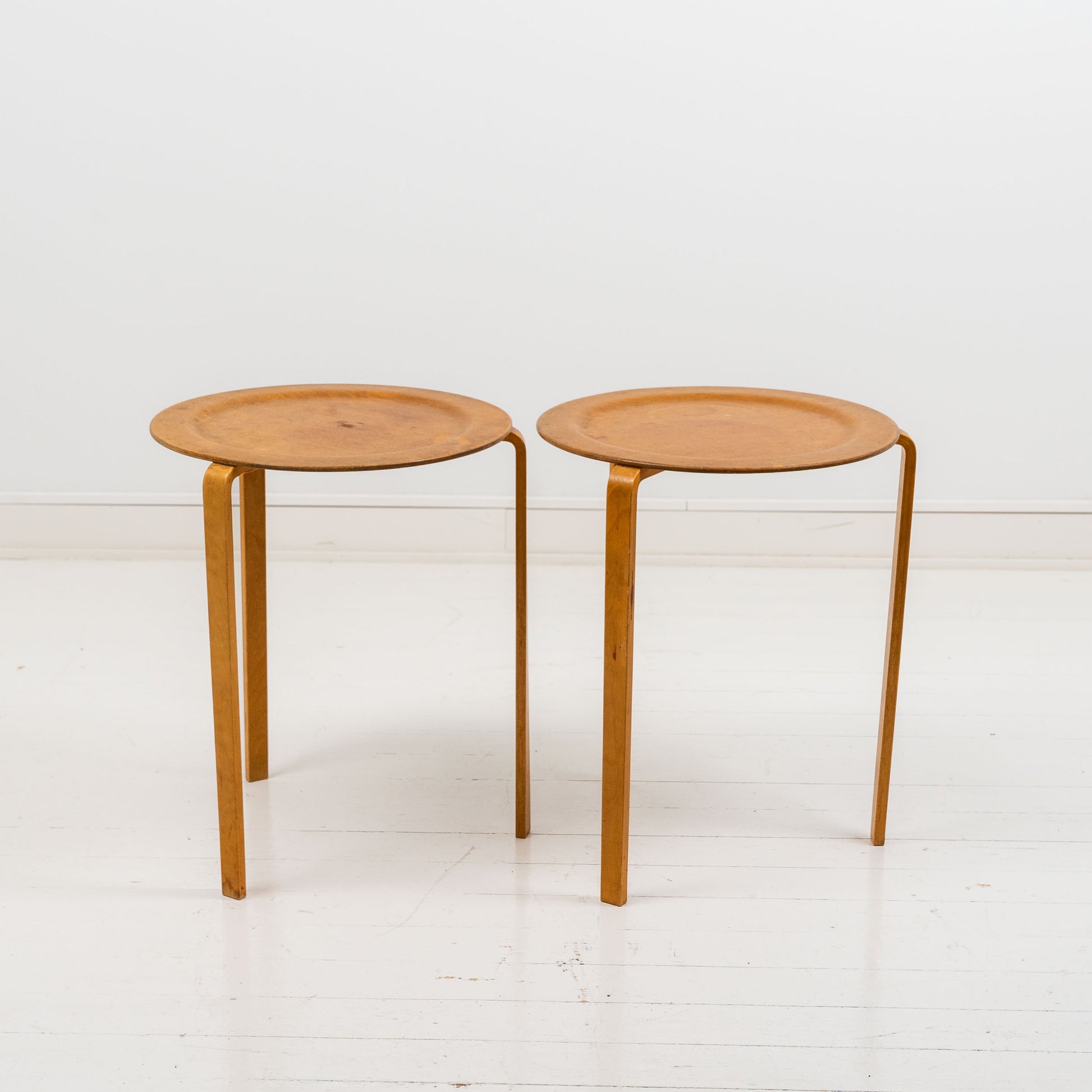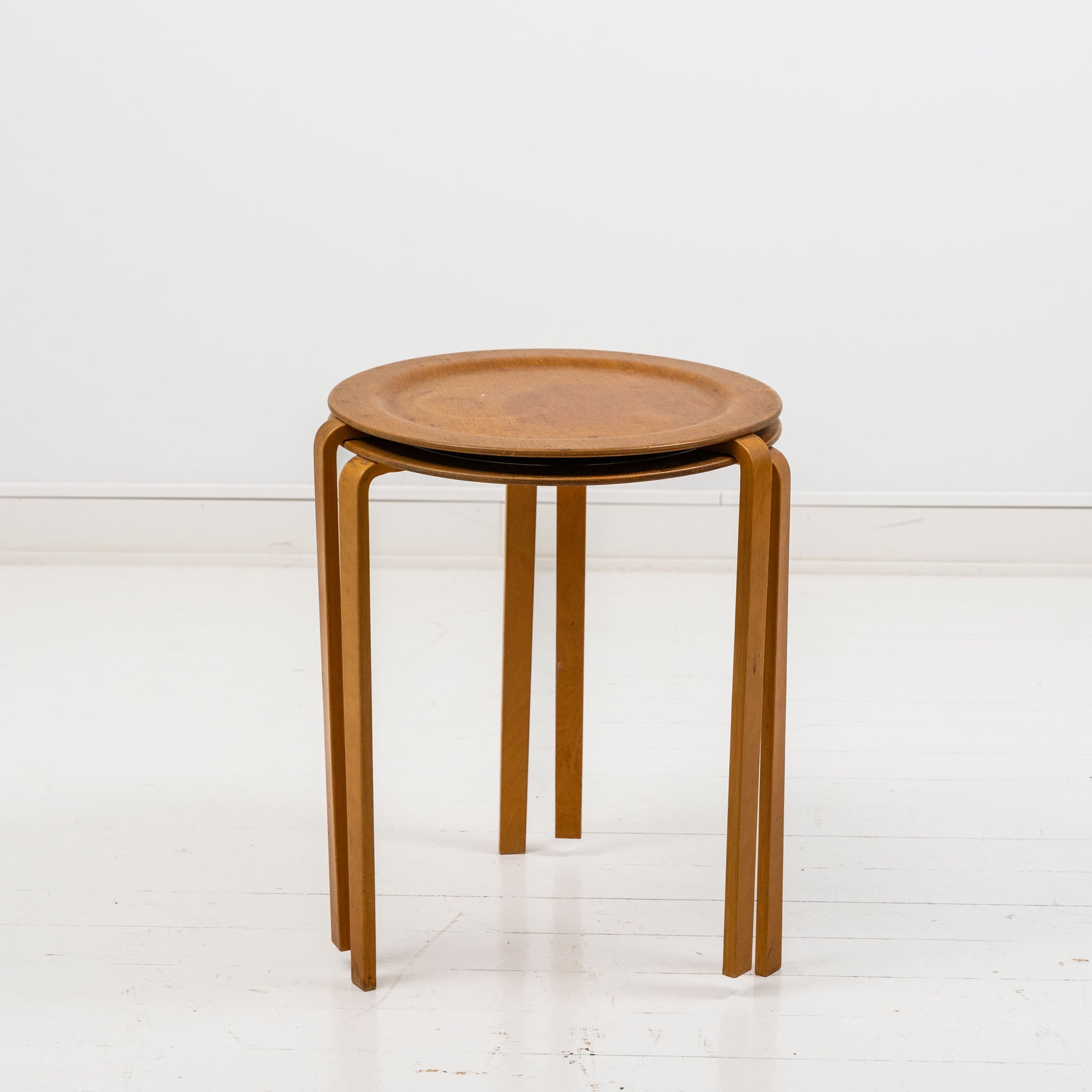 Ruotsalaisen Axel Larssonin (1898–1975) Bodaforsille suunnittelemat sivupöydät, jotka ovat pari. Miten ihanaa, kauankohan ovat olleet. Jos ostat molemmat, voit esimerkiksi laittaa pöydät vastakkain ja molemmille identtiset kamat täsmälleen samalla tavalla mutta peilikuvana aseteltuna, jolloin syntyy vaikutelma, että sinulla olisi peilin edessä pöytä, mutta onkin vain kaksi samanlaista pöytää, joilla on peilikuvaksi asetellut samanlaiset tavarat. Vähän outoa.