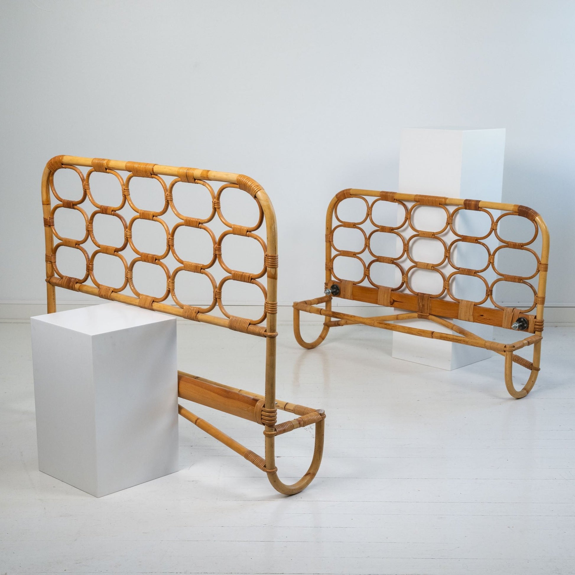 Rottingista ja bambusta valmistetut sängynpäädyt sänkysi päätyyn – yhden sängyn kahteen päätyyn vai kahden sängyn yhteen päätyyn, päätä itse, Suomi on vapaa maa. Päädyt on suunnitellut Hildur Hansson (1912–1999) 1900-luvun jälkipuoliskolla. Osta ja mene päätyyn asti. Vähäistä kulumaa.