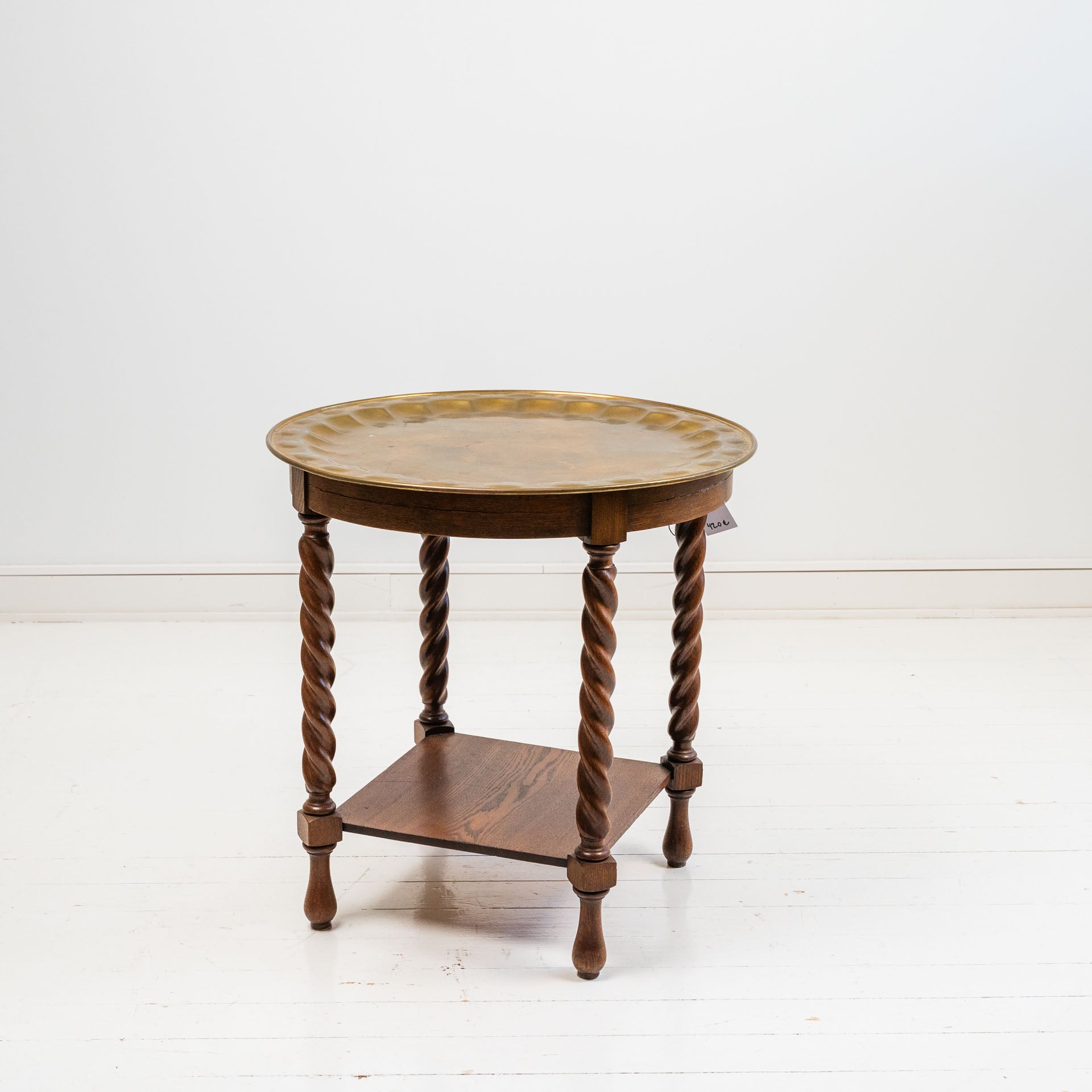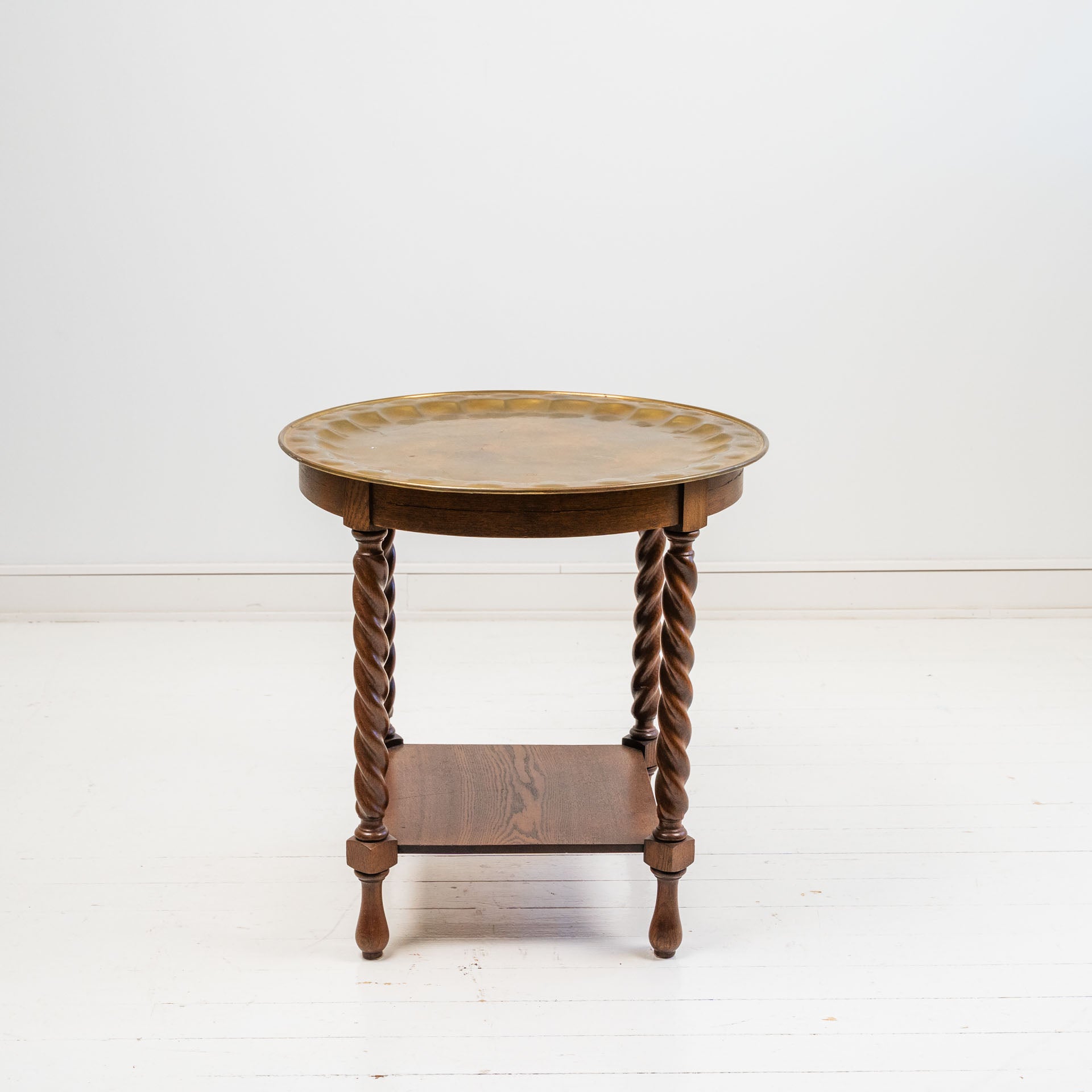 Tammipöytä messinkitarjottimella